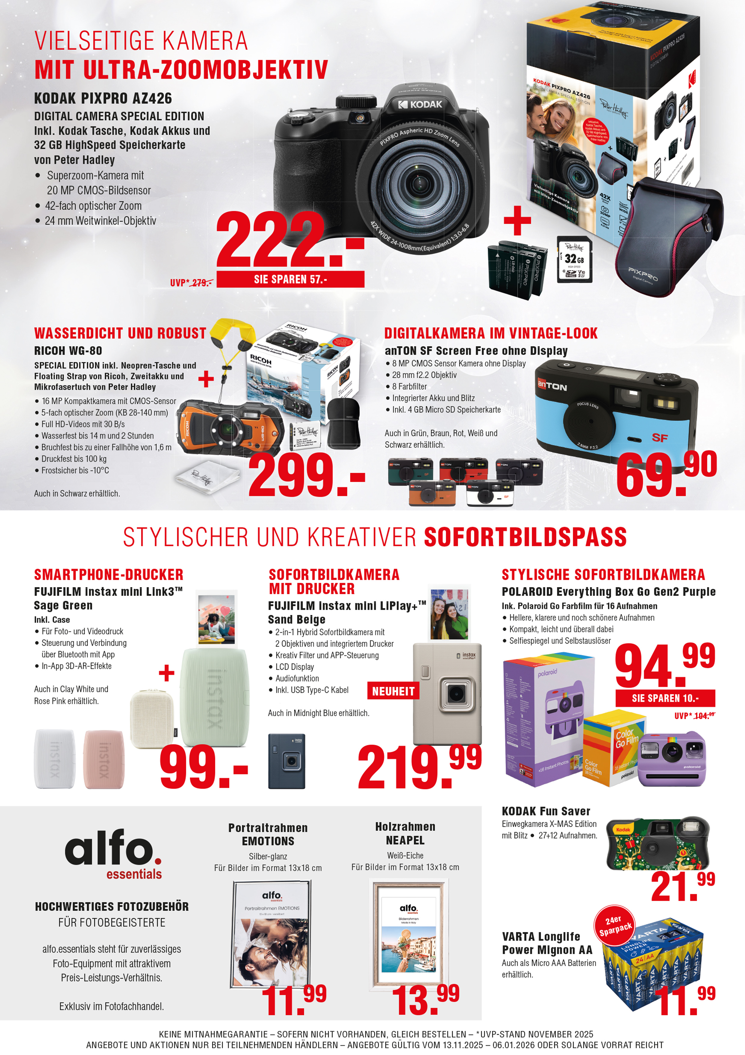Außerdem finden Sie bei uns eine liebevolle Auswahl an Bilderrahmen, Kameras, Sofortbildkameras, Fotoalben, funkelnden Weihnachtskugeln und vielen weiteren kleinen Geschenkideen, die von Herzen kommen.